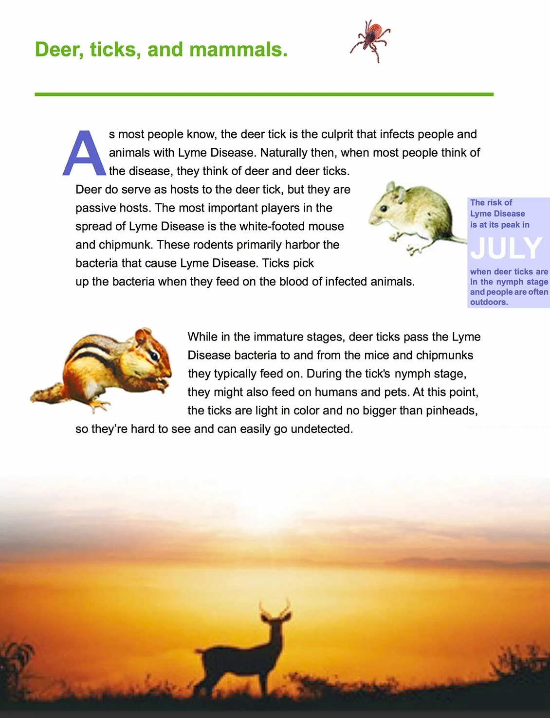 Diseases: Lyme disease, Babesiosis, Anaplasmosis, Powassan virus